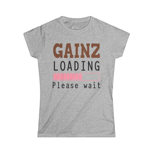 Gainz Loading Tee — Women's Gym Shirt ("Please wait" Progress Bar)